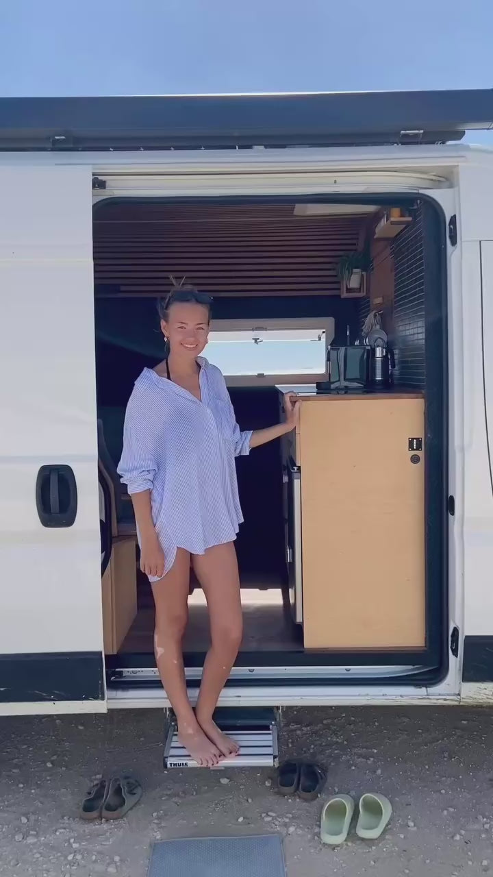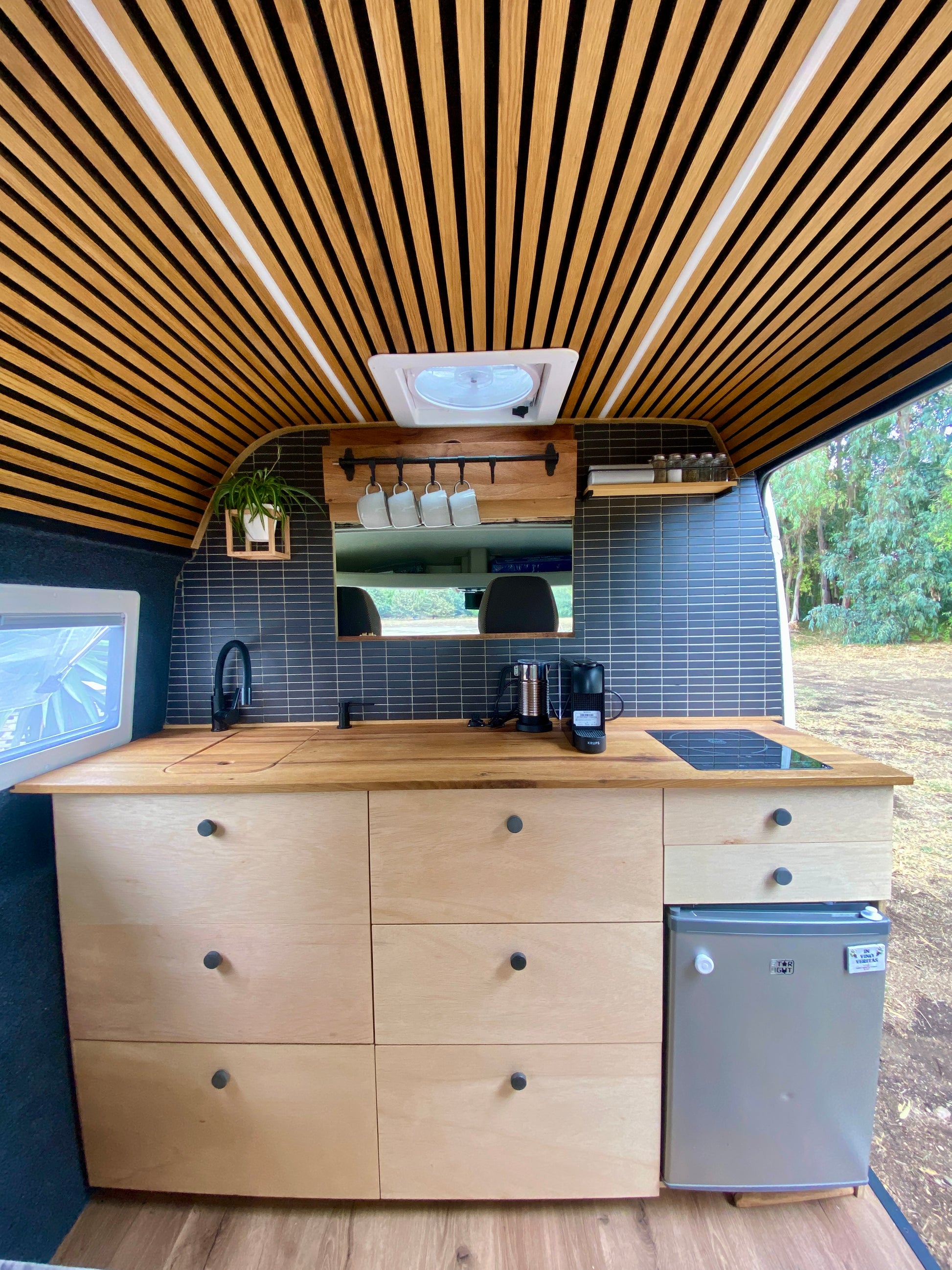 - voll ausgestattete Küche mit Induktionsherd und Kühlschrank (kein Gas im gesamten Van)